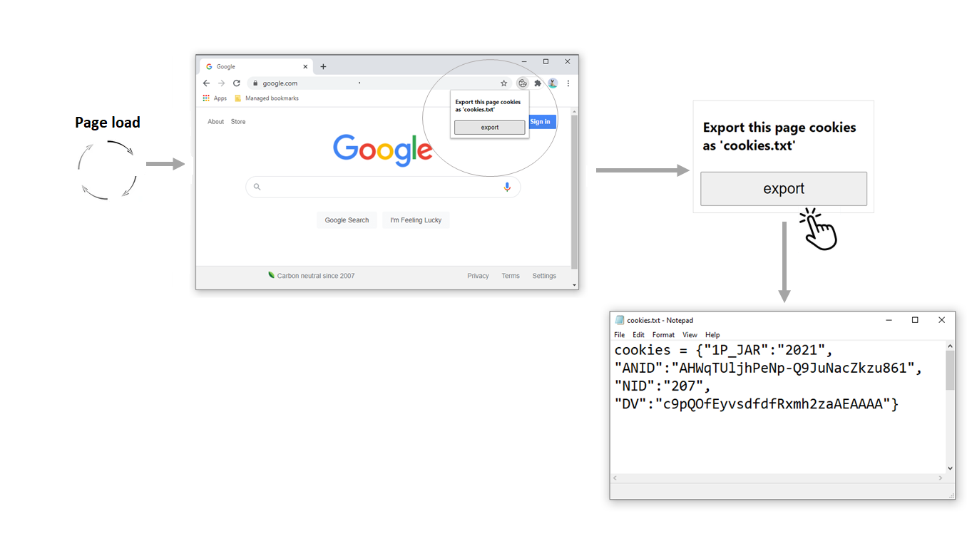ExportThisCookie Chrome extension lets you to export your browser cookies in JSON format
